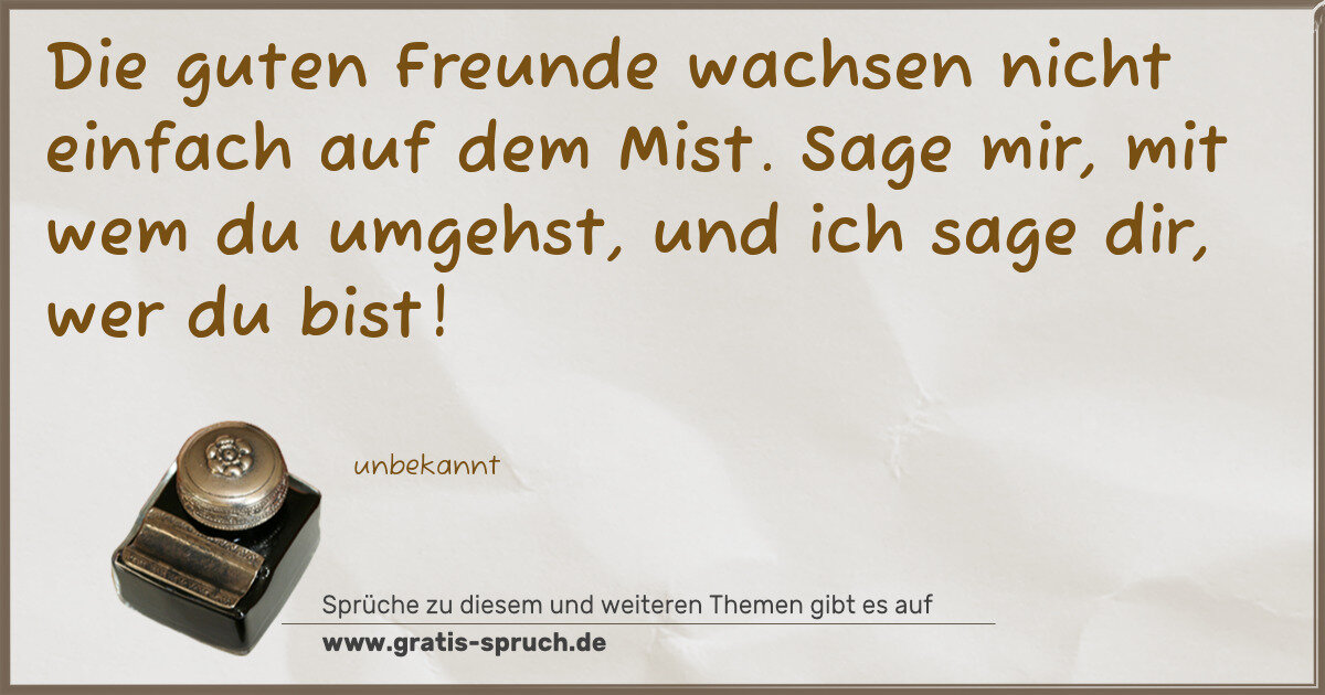 Die guten Freunde wachsen nicht einfach auf dem Mist. Sage mir, mit wem du umgehst, und ich sage dir, wer du bist!