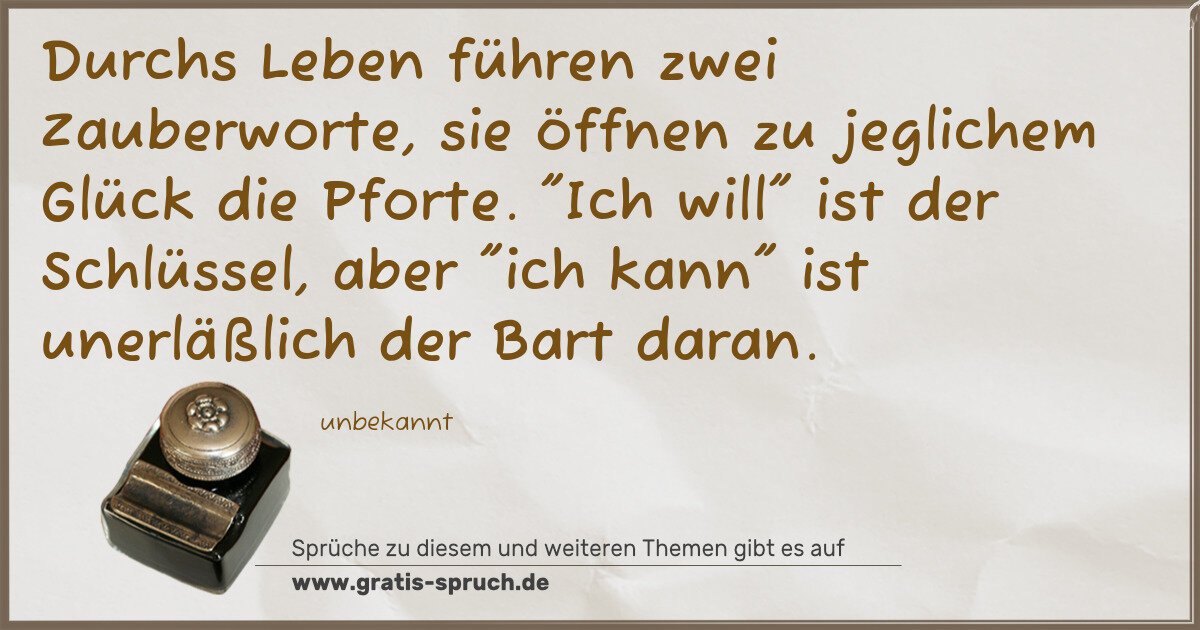 Durchs Leben führen zwei Zauberworte, sie öffnen zu jeglichem Glück die Pforte. "Ich will" ist der Schlüssel, aber "ich kann" ist unerläßlich der Bart daran.