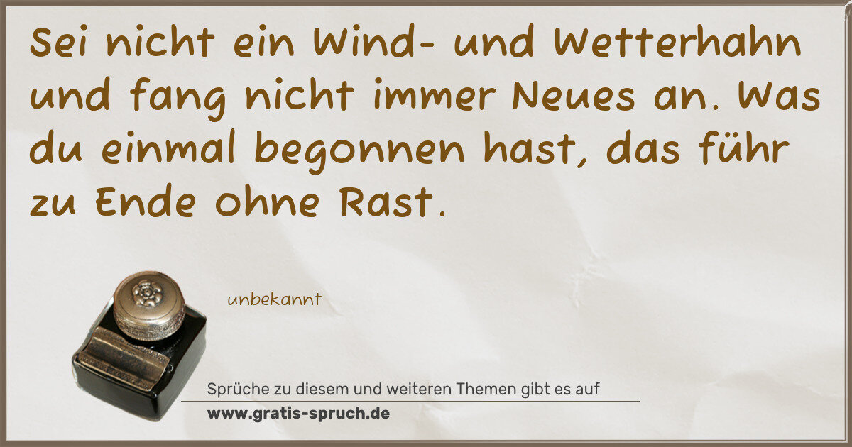 Sei nicht ein Wind- und Wetterhahn und fang nicht immer Neues an. Was du einmal begonnen hast, das führ zu Ende ohne Rast.