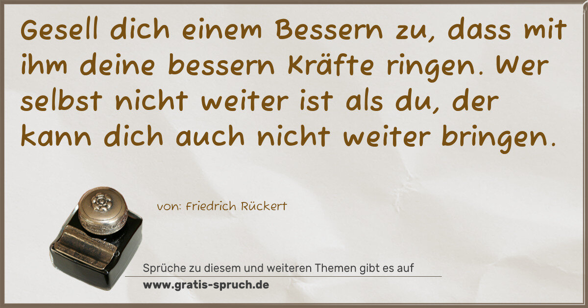 Gesell dich einem Bessern zu, dass mit ihm deine bessern Kräfte ringen. Wer selbst nicht weiter ist als du, der kann dich auch nicht weiter bringen.
