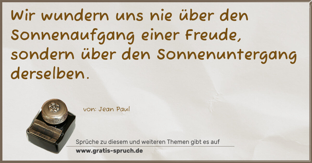Wir wundern uns nie über den Sonnenaufgang einer Freude, sondern über den Sonnenuntergang derselben.