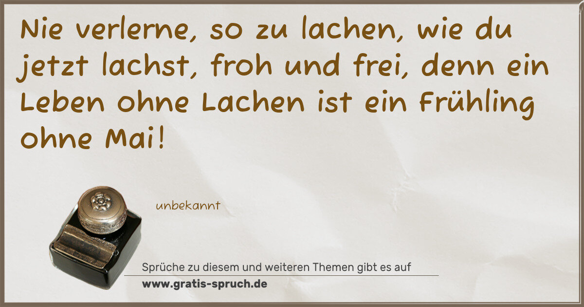 Nie verlerne, so zu lachen, wie du jetzt lachst, froh und frei, denn ein Leben ohne Lachen ist ein Frühling ohne Mai!