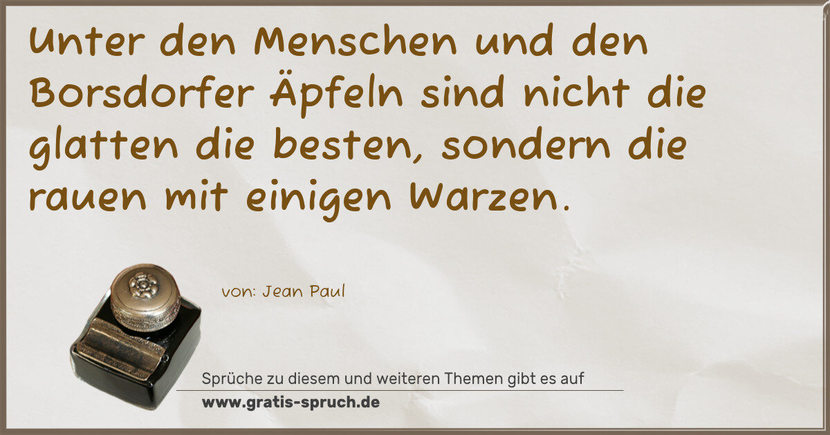 Unter den Menschen und den Borsdorfer Äpfeln sind nicht die glatten die besten, sondern die rauen mit einigen Warzen.