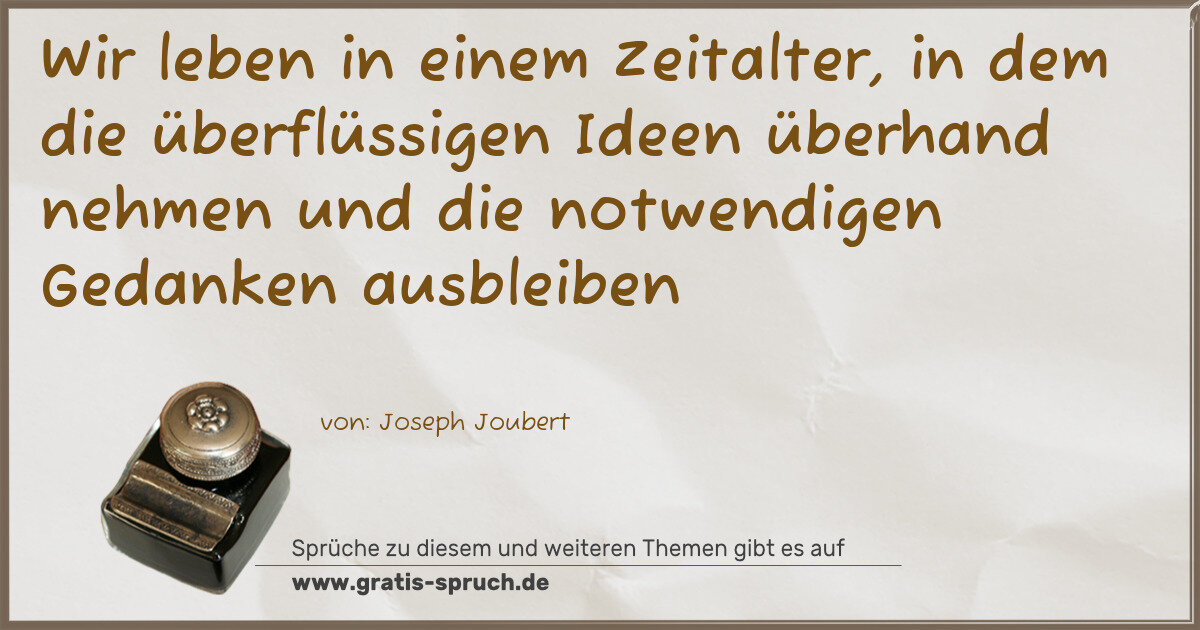 Wir leben in einem Zeitalter, in dem die überflüssigen Ideen überhand nehmen und die notwendigen Gedanken ausbleiben