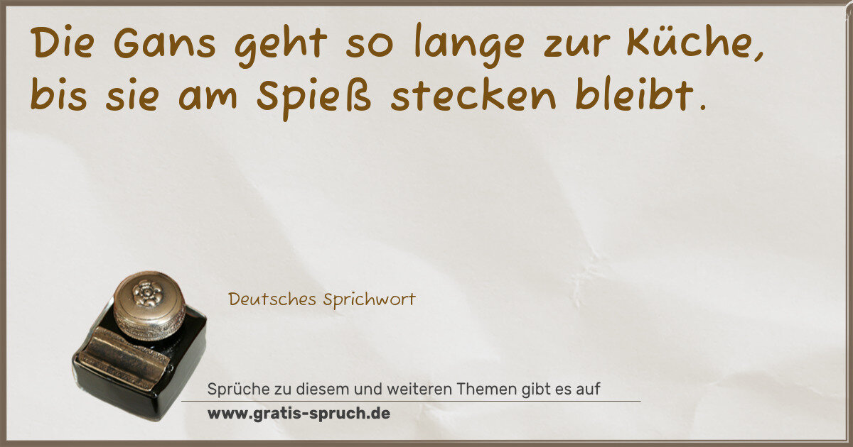 Die Gans geht so lange zur Küche, bis sie am Spieß stecken bleibt.