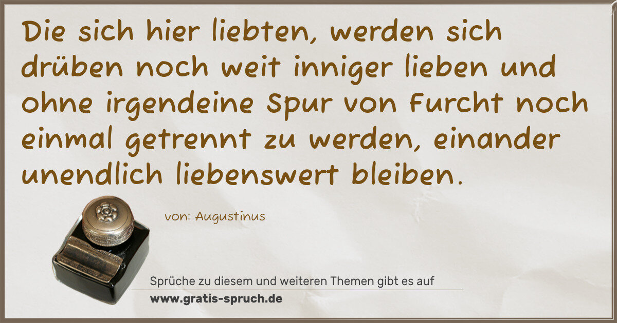 Die sich hier liebten, werden sich drüben noch weit inniger lieben und ohne irgendeine Spur von Furcht noch einmal getrennt zu werden, einander unendlich liebenswert bleiben.