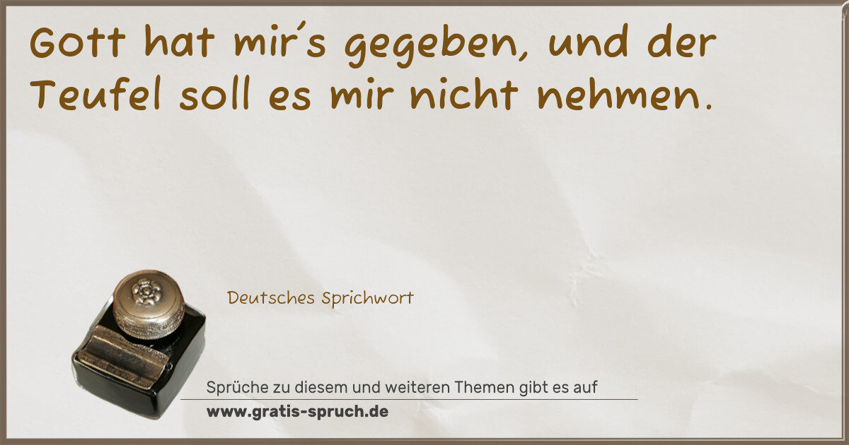 Gott hat mir's gegeben, und der Teufel soll es mir nicht nehmen.