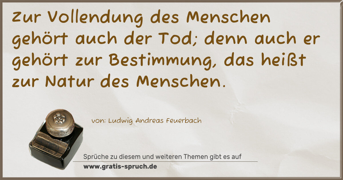 Zur Vollendung des Menschen gehört auch der Tod; denn auch er gehört zur Bestimmung, das heißt zur Natur des Menschen.