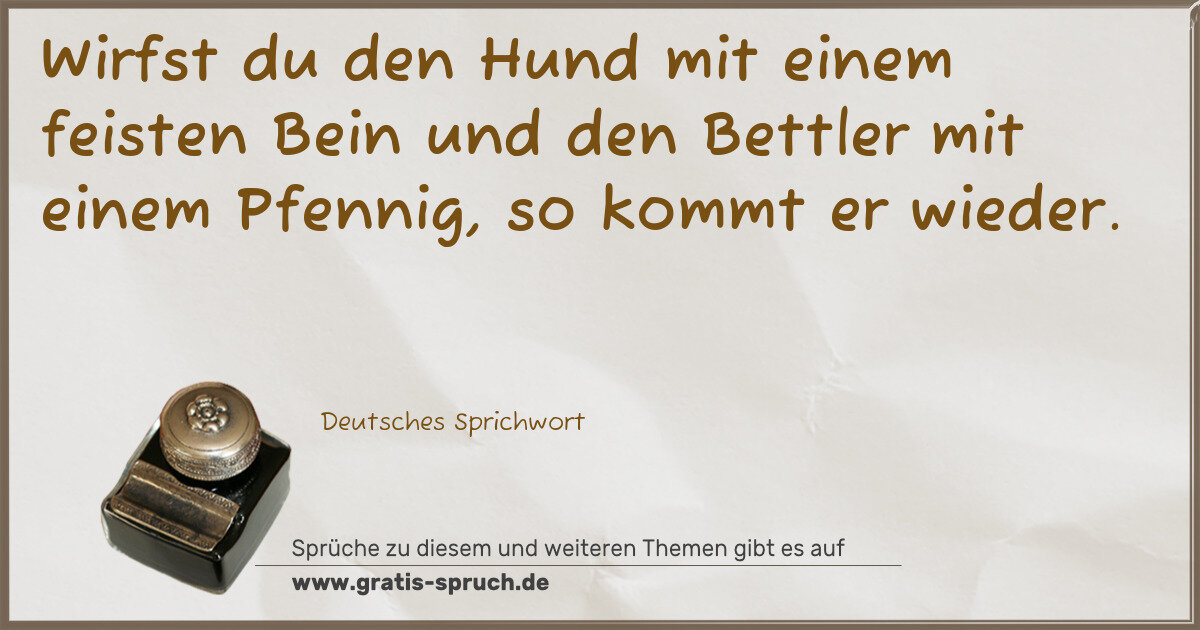 Wirfst du den Hund mit einem feisten Bein und den Bettler mit einem Pfennig, so kommt er wieder.
