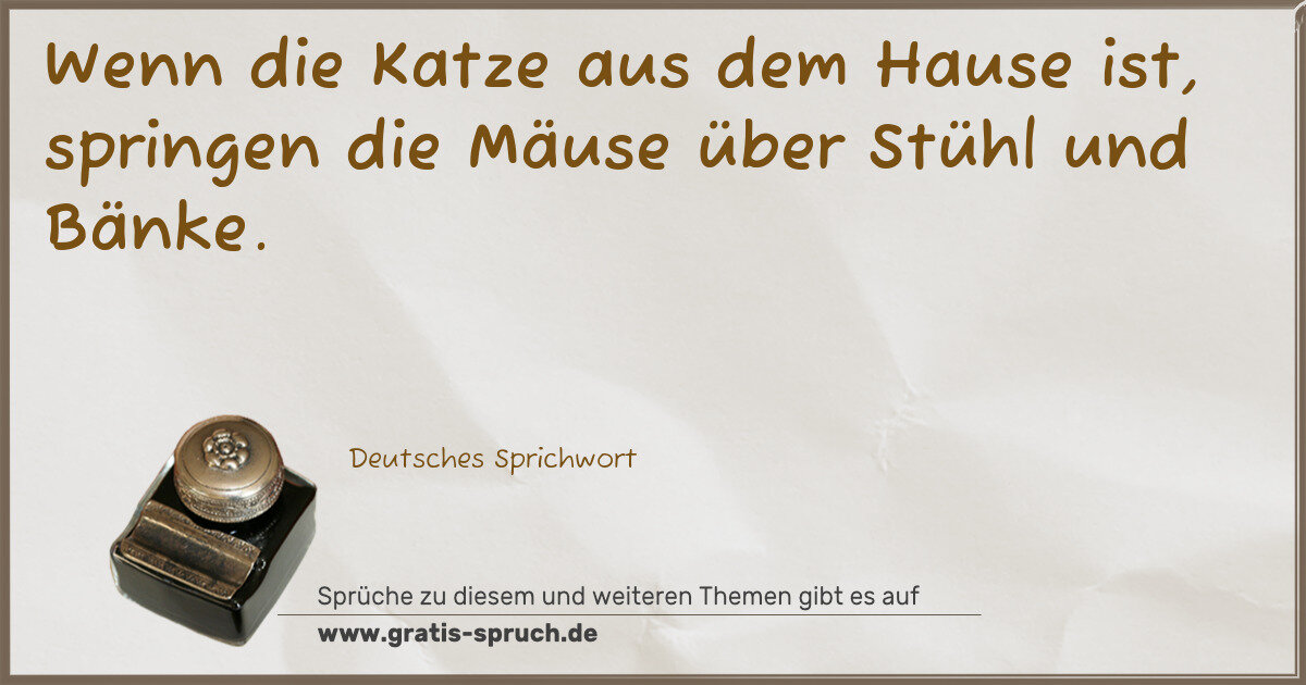 Wenn die Katze aus dem Hause ist, springen die Mäuse über Stühl und Bänke.