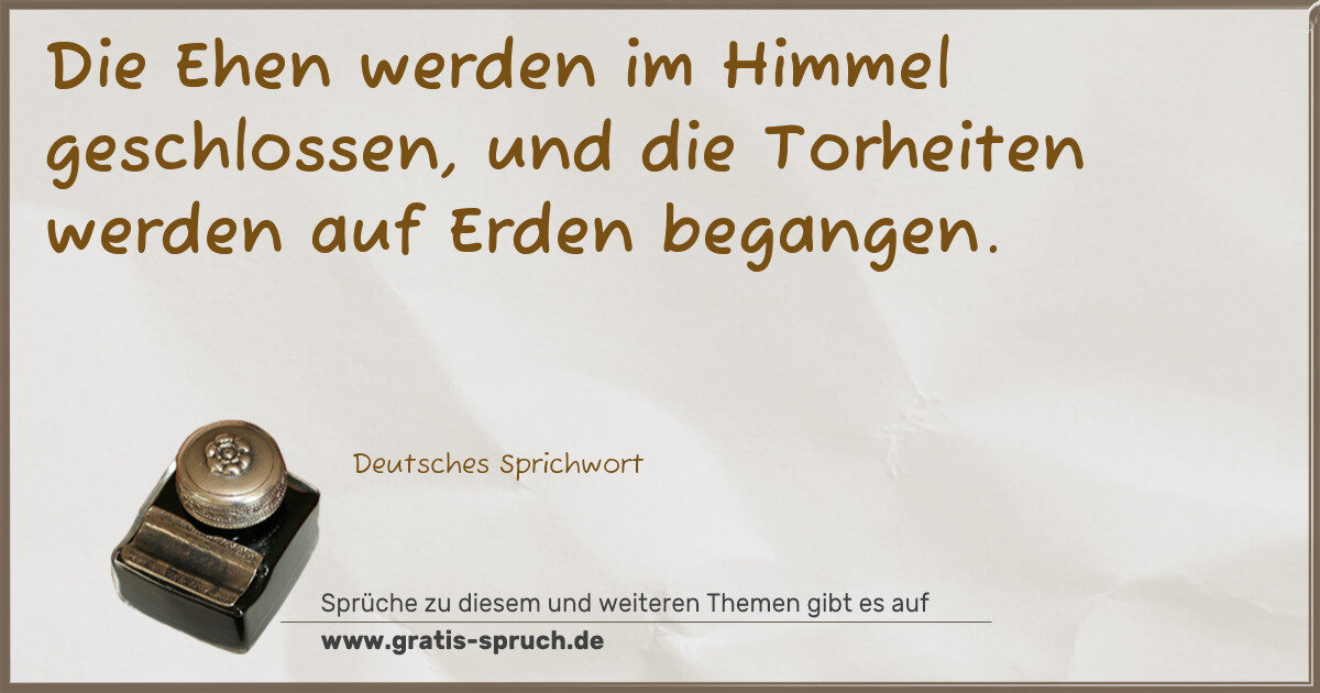 Die Ehen werden im Himmel geschlossen, und die Torheiten werden auf Erden begangen.
