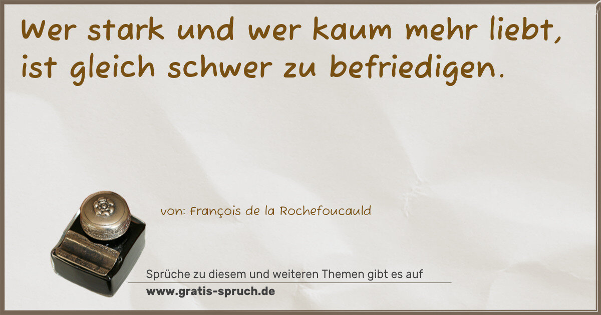 Wer stark und wer kaum mehr liebt, ist gleich schwer zu befriedigen.