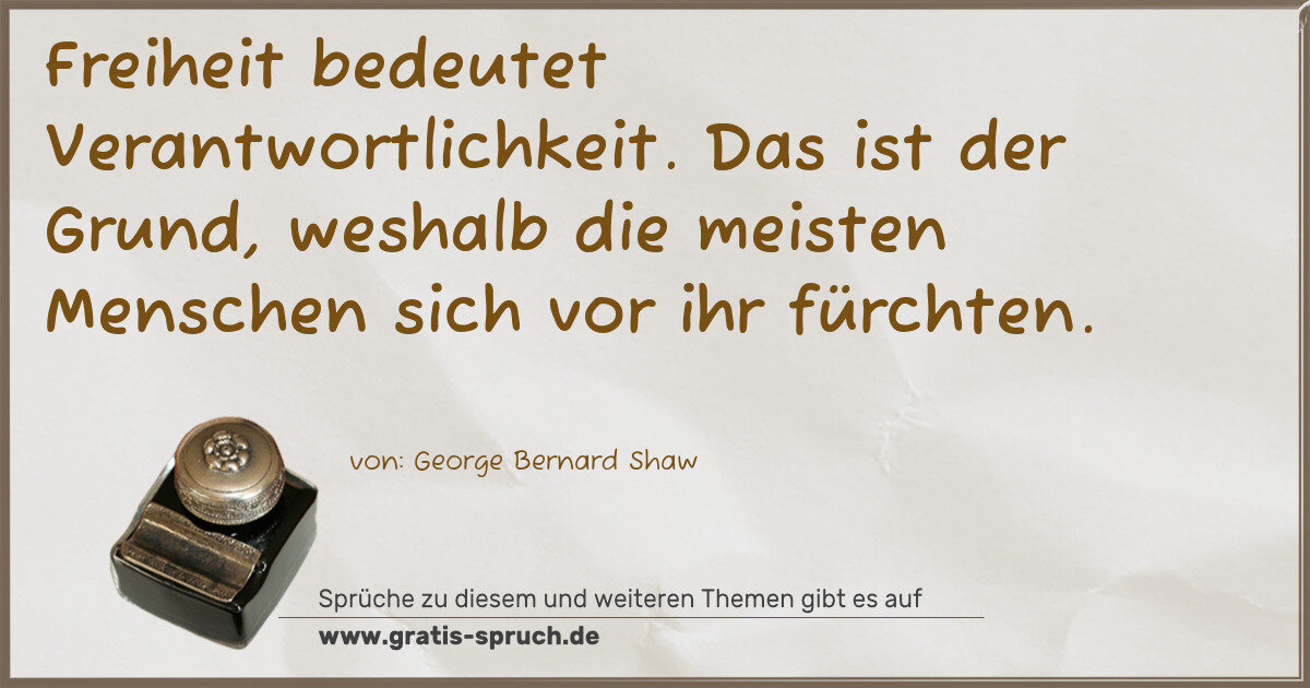 Freiheit bedeutet Verantwortlichkeit. Das ist der Grund, weshalb die meisten Menschen sich vor ihr fürchten.