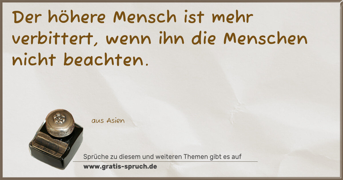 Der höhere Mensch ist mehr verbittert, wenn ihn die Menschen nicht beachten.