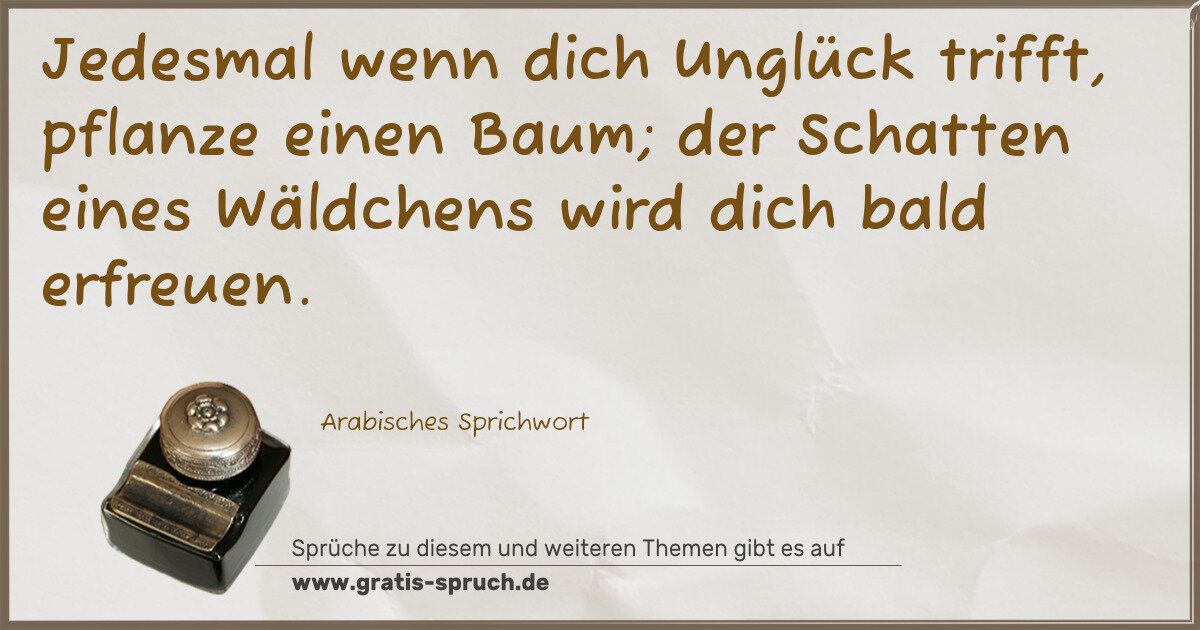 Jedesmal wenn dich Unglück trifft, pflanze einen Baum; der Schatten eines Wäldchens wird dich bald erfreuen.