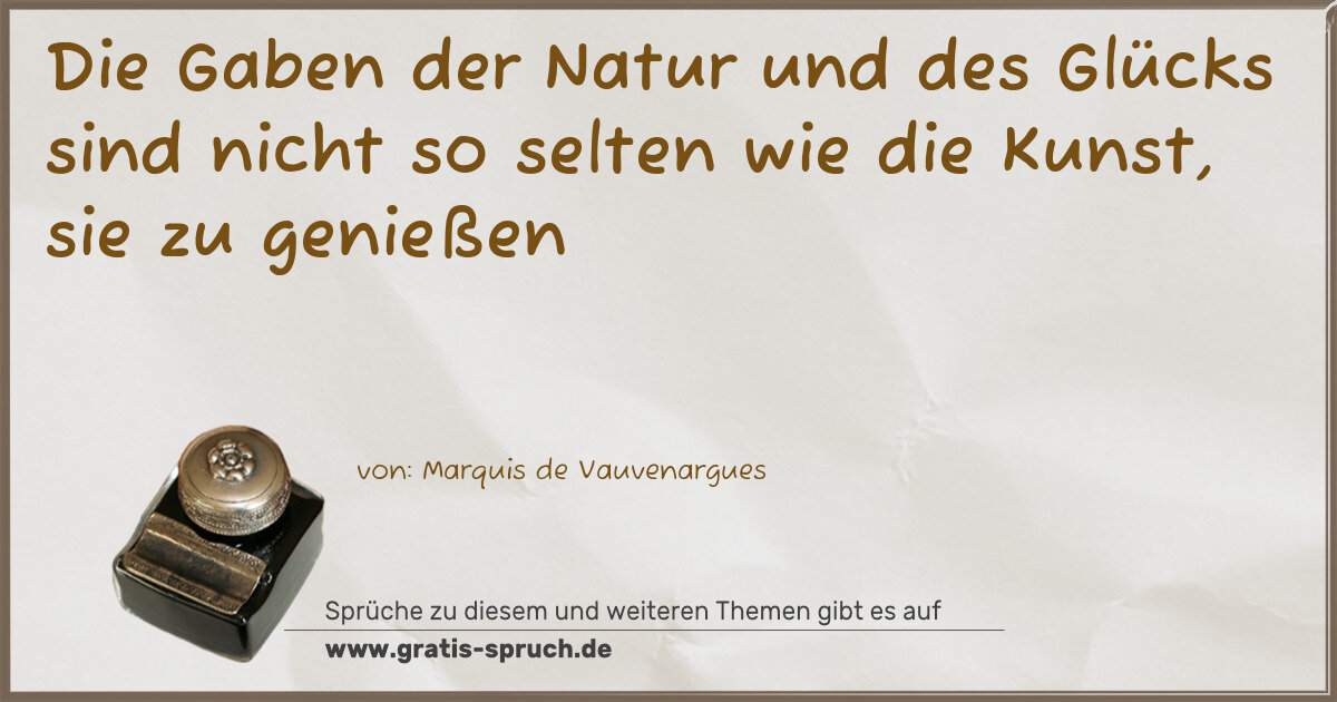 Die Gaben der Natur und des Glücks sind nicht so selten wie die Kunst, sie zu genießen