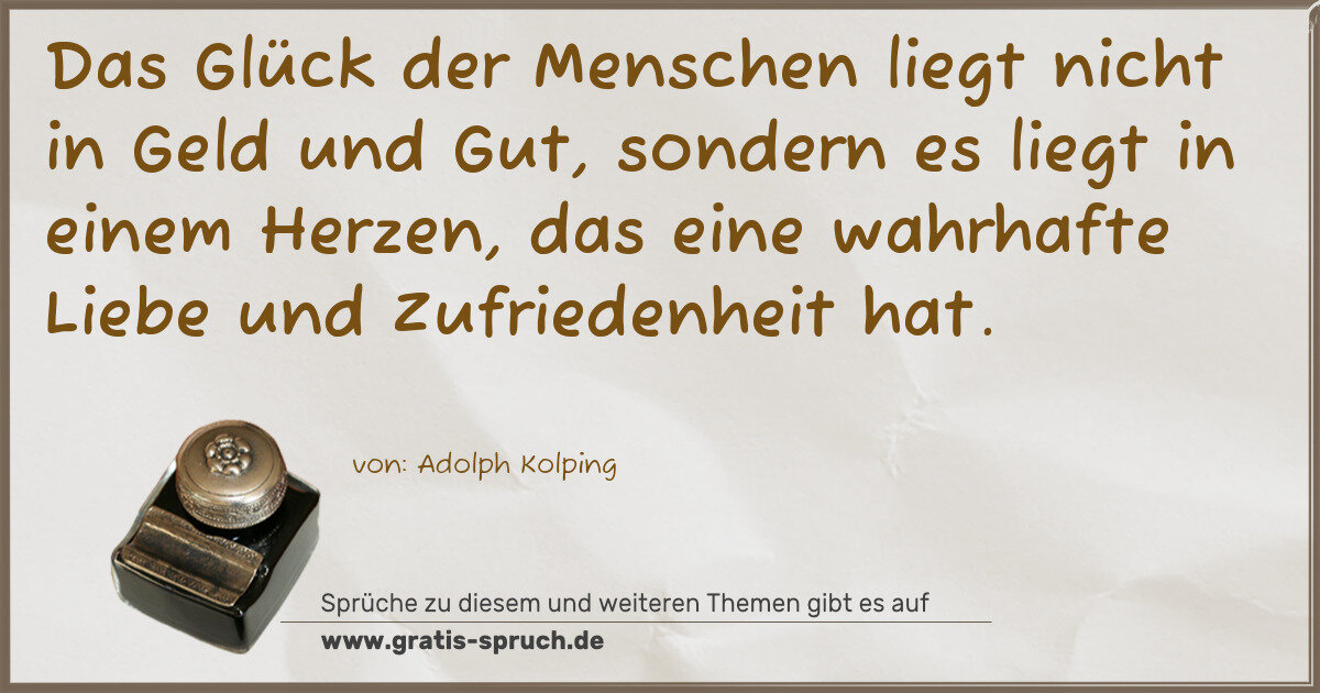 Das Glück der Menschen liegt nicht in Geld und Gut, sondern es liegt in einem Herzen, das eine wahrhafte Liebe und Zufriedenheit hat.
