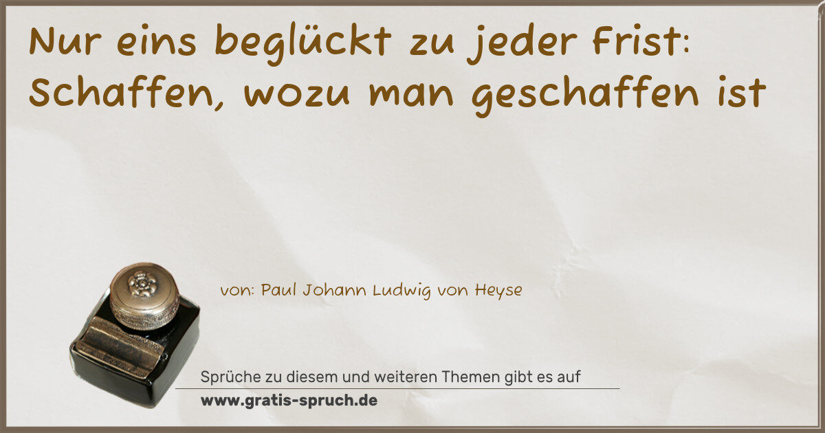 Nur eins beglückt zu jeder Frist: Schaffen, wozu man geschaffen ist