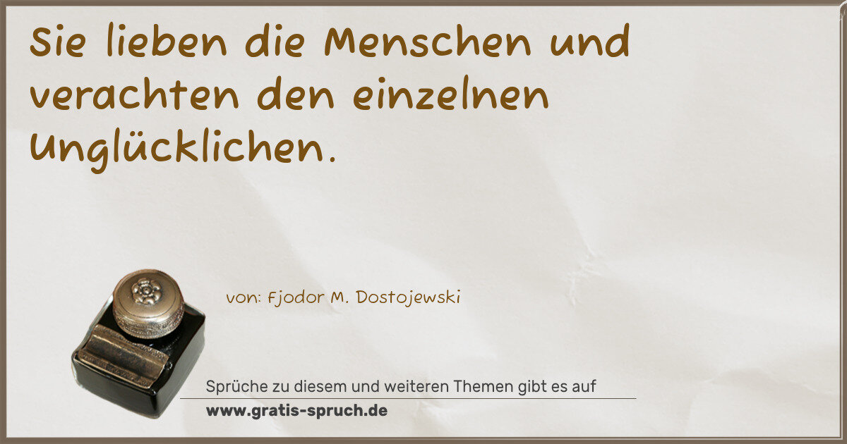 Sie lieben die Menschen und verachten den einzelnen Unglücklichen.