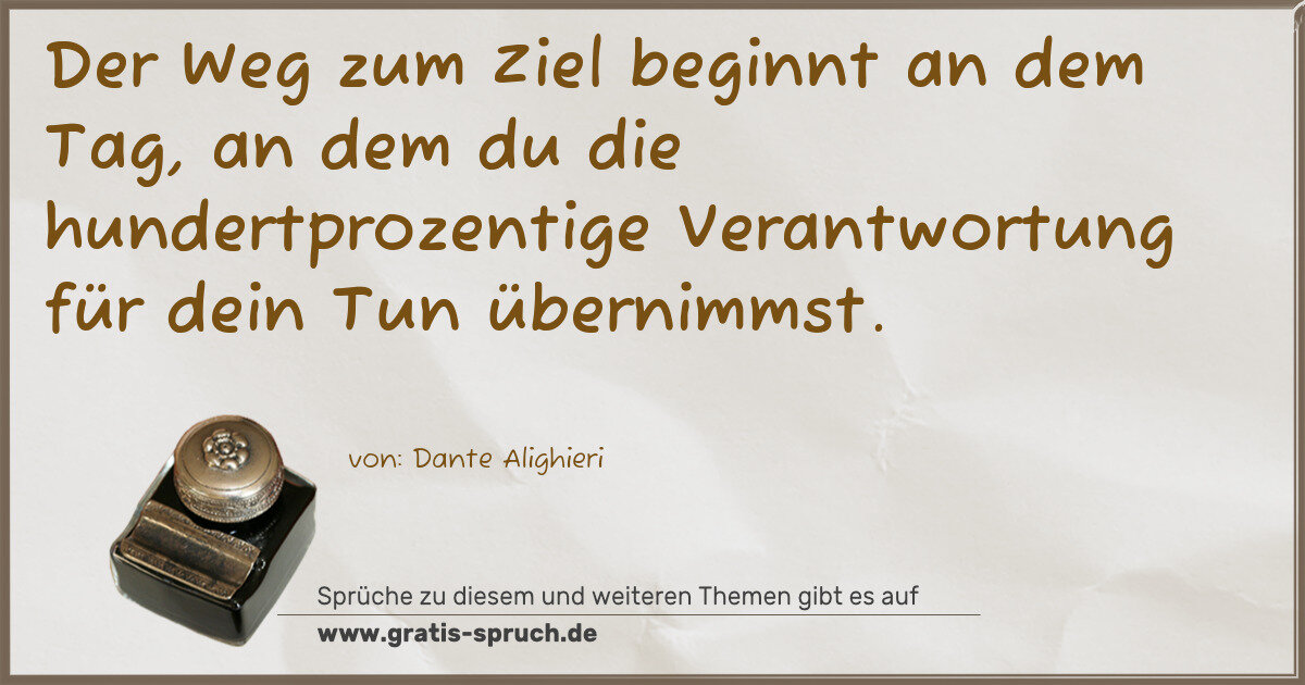 Der Weg zum Ziel beginnt an dem Tag, an dem du die hundertprozentige Verantwortung für dein Tun übernimmst.