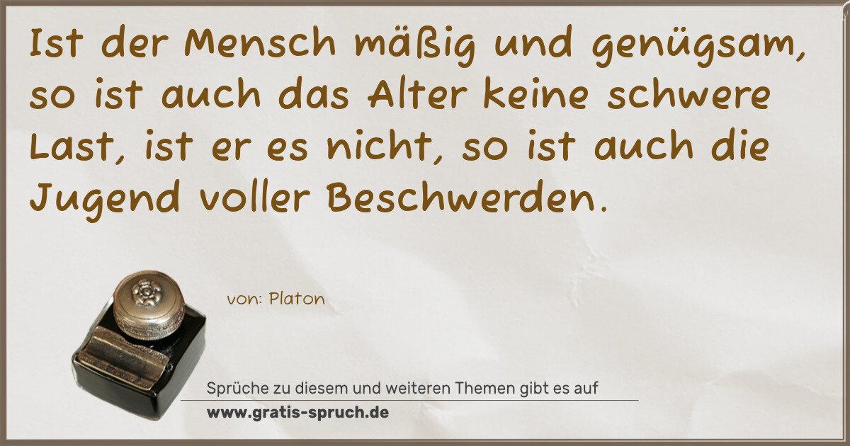 Ist der Mensch mäßig und genügsam, so ist auch das Alter keine schwere Last, ist er es nicht, so ist auch die Jugend voller Beschwerden.