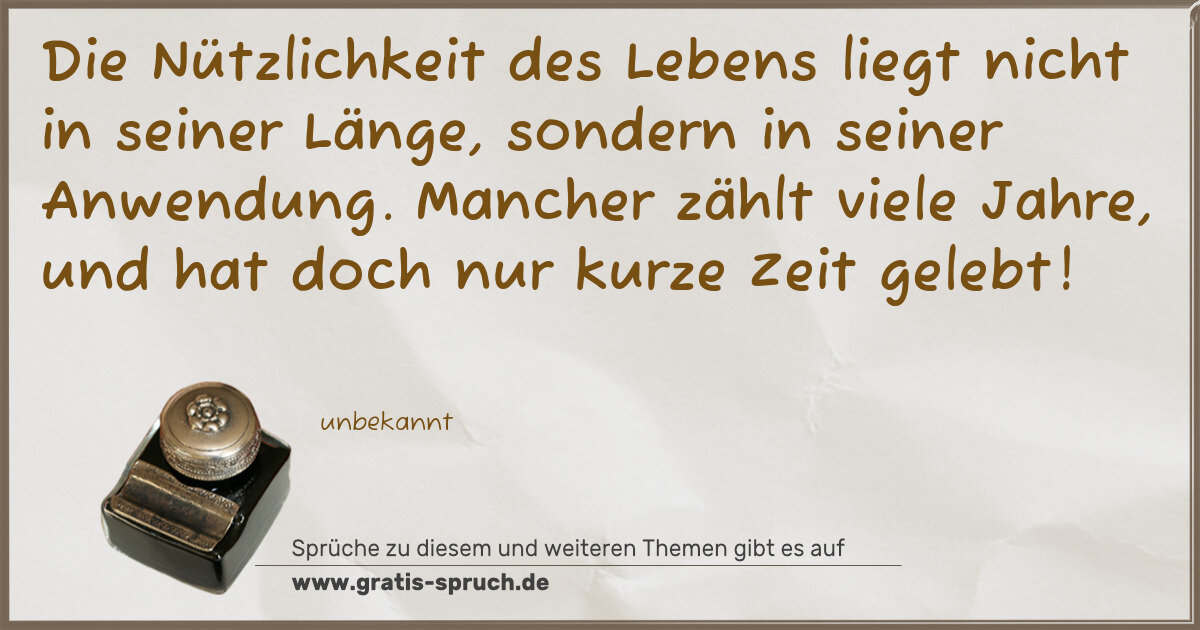 Die Nützlichkeit des Lebens liegt nicht in seiner Länge, sondern in seiner Anwendung. Mancher zählt viele Jahre, und hat doch nur kurze Zeit gelebt!