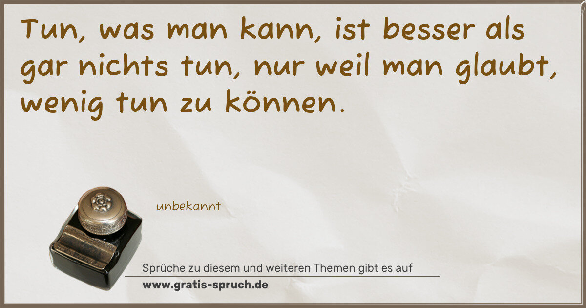 Tun, was man kann, ist besser als gar nichts tun, nur weil man glaubt, wenig tun zu können.