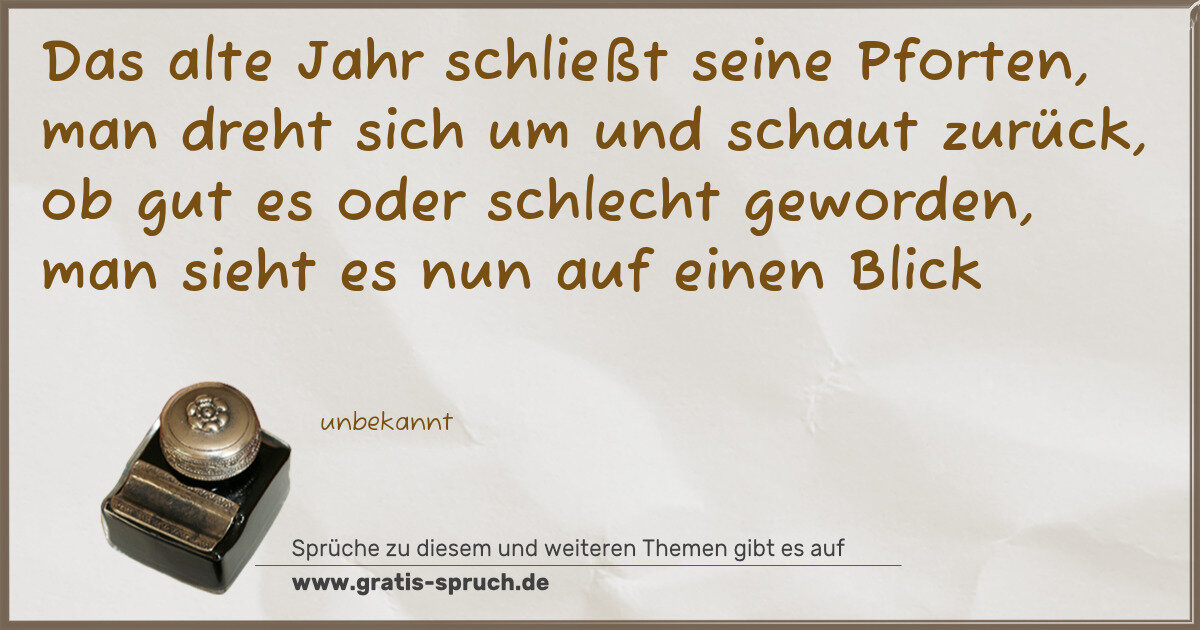 Das alte Jahr schließt seine Pforten, man dreht sich um und schaut zurück, ob gut es oder schlecht geworden, man sieht es nun auf einen Blick