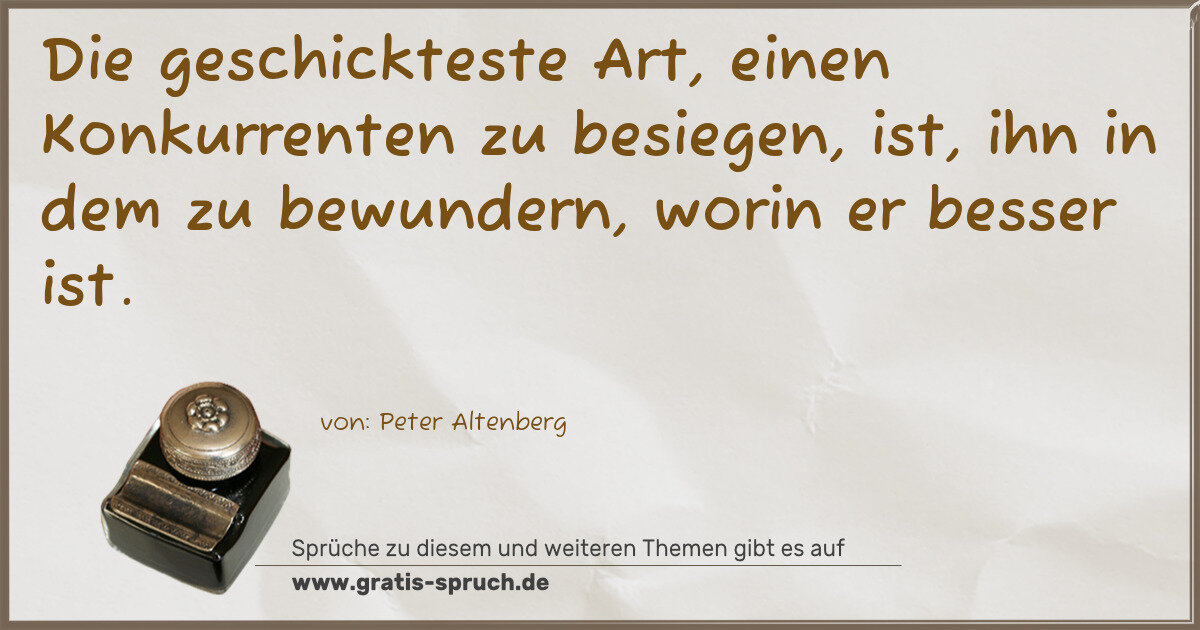 Die geschickteste Art, einen Konkurrenten zu besiegen, ist, ihn in dem zu bewundern, worin er besser ist.