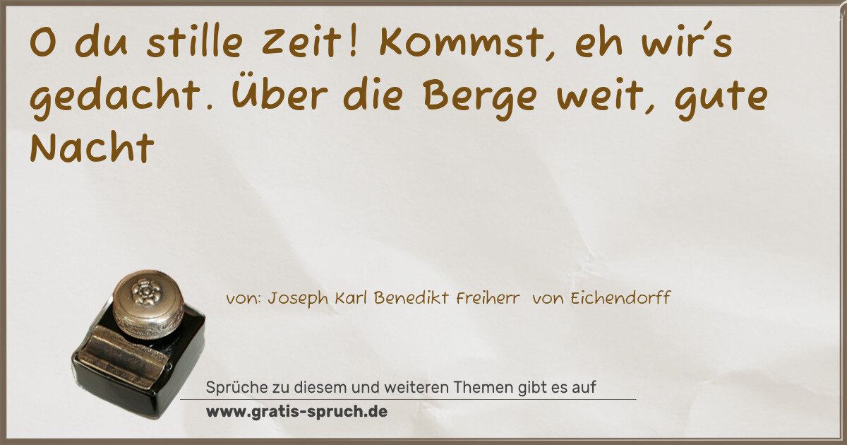 O du stille Zeit! Kommst, eh wir's gedacht. Über die Berge weit, gute Nacht