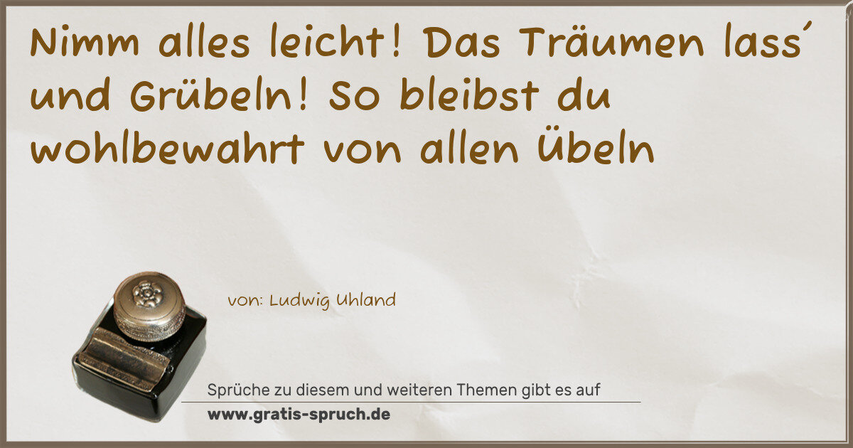 Nimm alles leicht! Das Träumen lass' und Grübeln! So bleibst du wohlbewahrt von allen Übeln