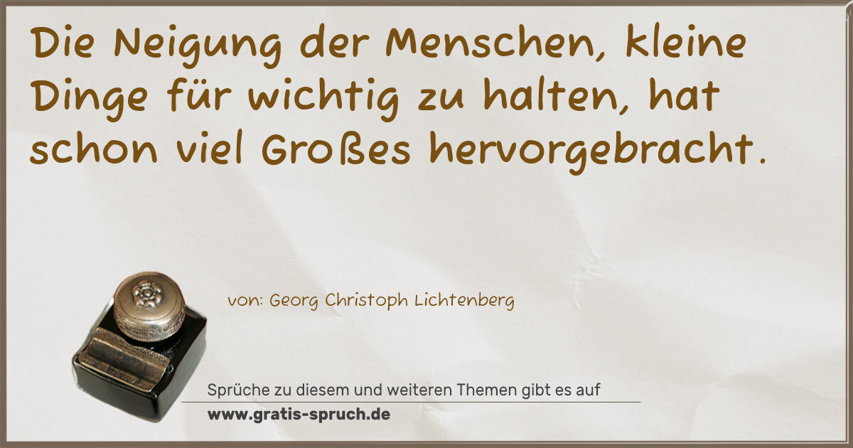 Die Neigung der Menschen, kleine Dinge für wichtig zu halten, hat schon viel Großes hervorgebracht.
