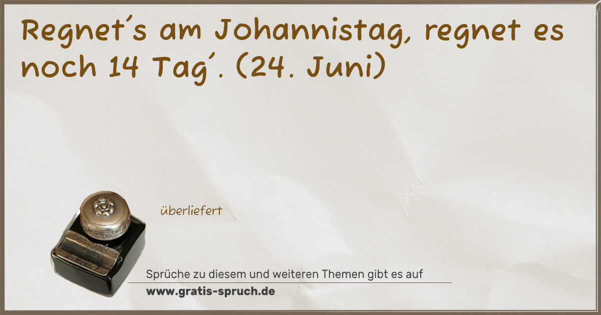 Regnet's am Johannistag, regnet es noch 14 Tag'. (24. Juni)