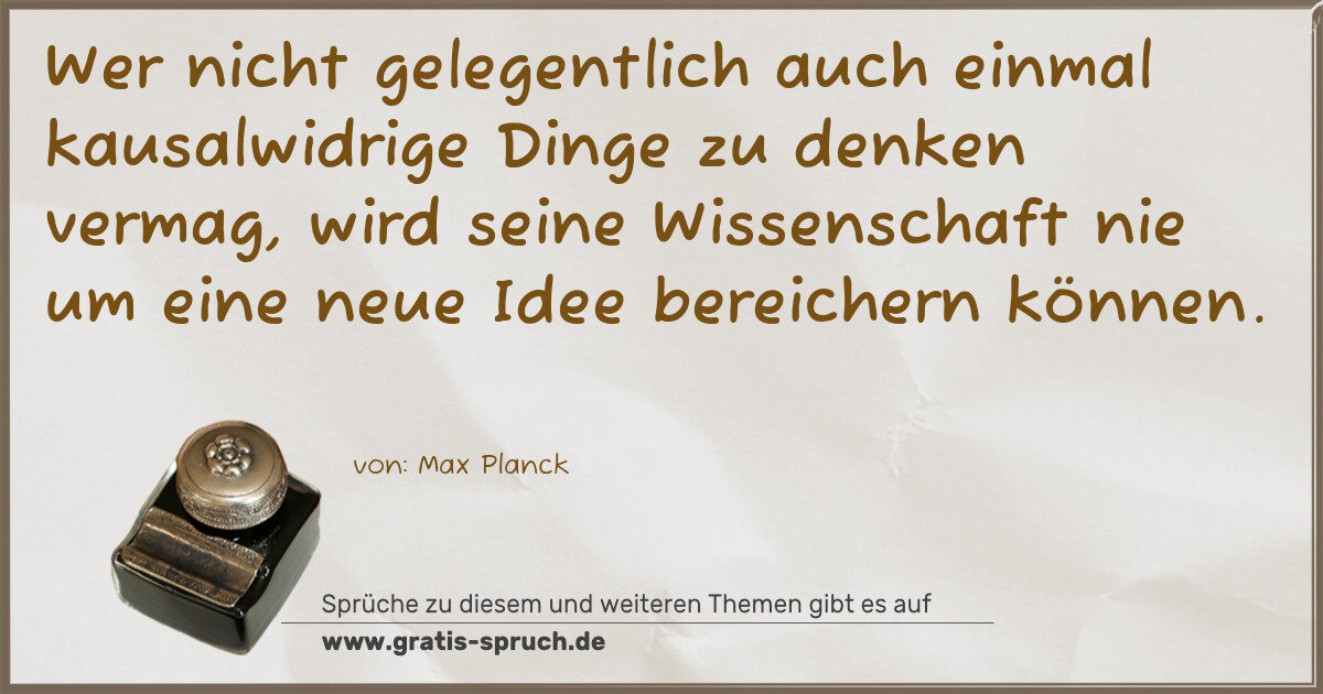 Wer nicht gelegentlich auch einmal kausalwidrige Dinge zu denken vermag, wird seine Wissenschaft nie um eine neue Idee bereichern können.