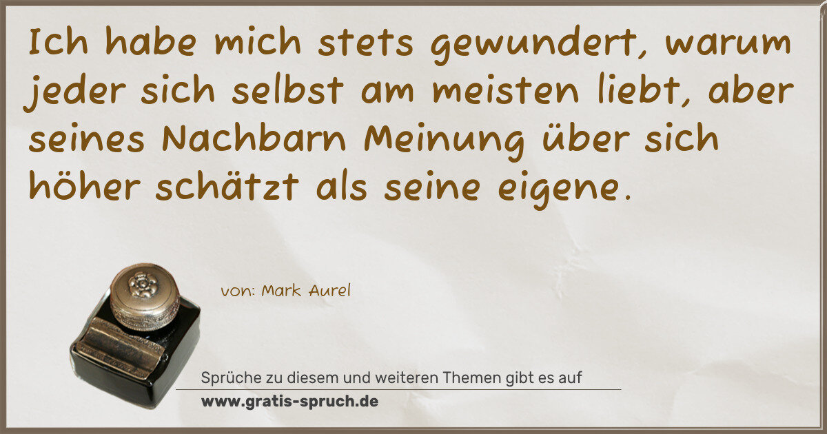 Ich habe mich stets gewundert, warum jeder sich selbst am meisten liebt, aber seines Nachbarn Meinung über sich höher schätzt als seine eigene.