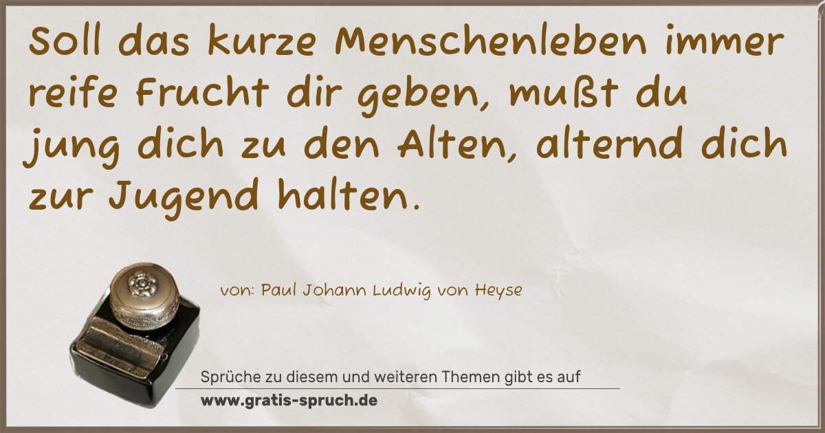 Soll das kurze Menschenleben immer reife Frucht dir geben, mußt du jung dich zu den Alten, alternd dich zur Jugend halten.