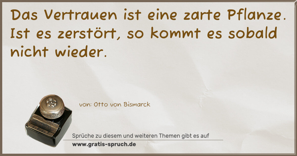 Das Vertrauen ist eine zarte Pflanze. Ist es zerstört, so kommt es sobald nicht wieder.