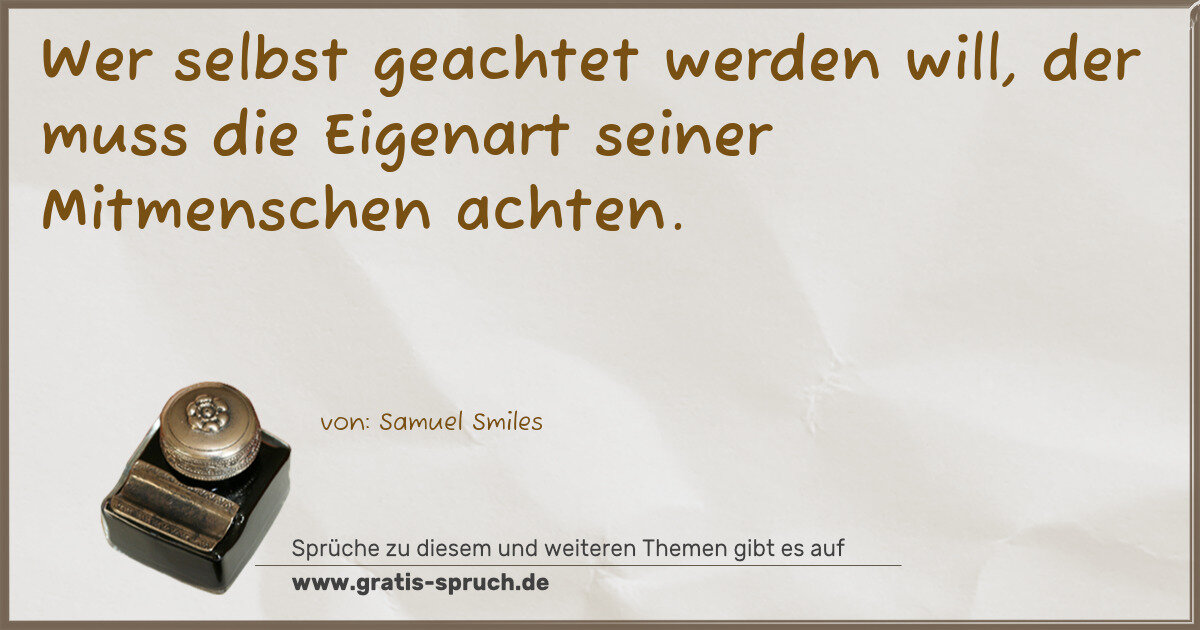 Wer selbst geachtet werden will, der muss die Eigenart seiner Mitmenschen achten.