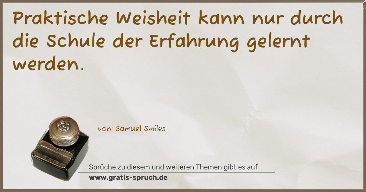 Praktische Weisheit kann nur durch die Schule der Erfahrung gelernt werden.