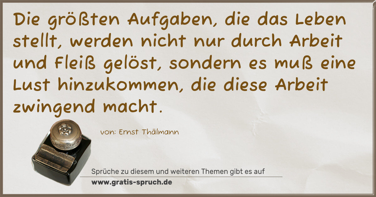Die größten Aufgaben, die das Leben stellt, werden nicht nur durch Arbeit und Fleiß gelöst, sondern es muß eine Lust hinzukommen, die diese Arbeit zwingend macht.