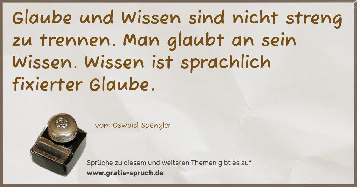 Glaube und Wissen sind nicht streng zu trennen. Man glaubt an sein Wissen. Wissen ist sprachlich fixierter Glaube.