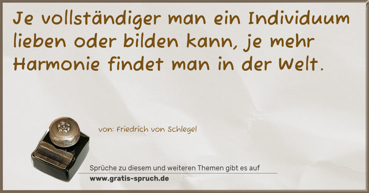 Je vollständiger man ein Individuum lieben oder bilden kann, je mehr Harmonie findet man in der Welt.