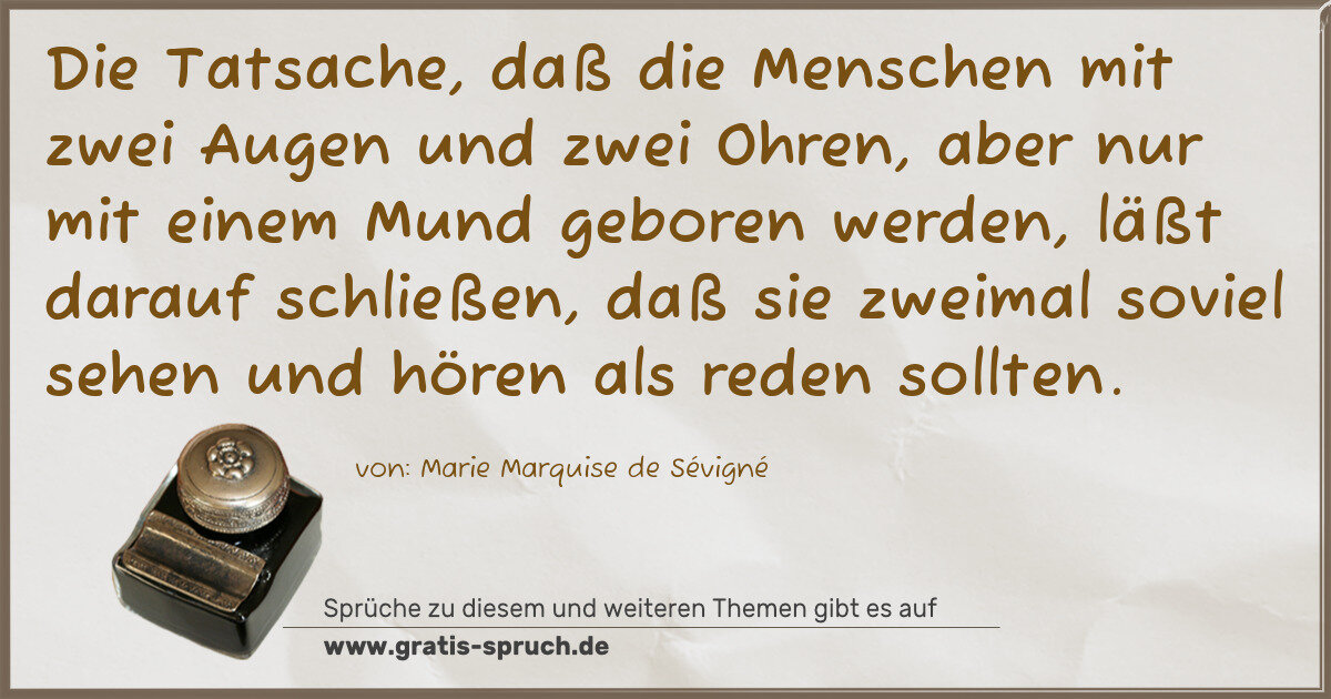 Die Tatsache, daß die Menschen mit zwei Augen und zwei Ohren, aber nur mit einem Mund geboren werden, läßt darauf schließen, daß sie zweimal soviel sehen und hören als reden sollten.