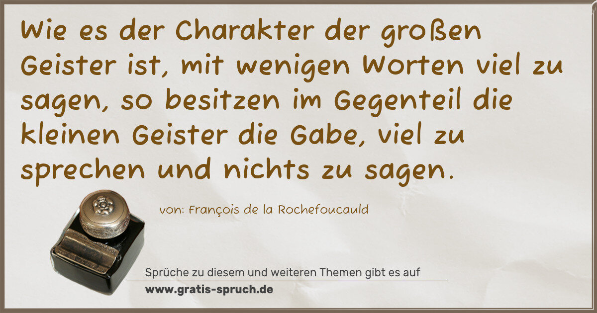 Wie es der Charakter der großen Geister ist, mit wenigen Worten viel zu sagen, so besitzen im Gegenteil die kleinen Geister die Gabe, viel zu sprechen und nichts zu sagen.
