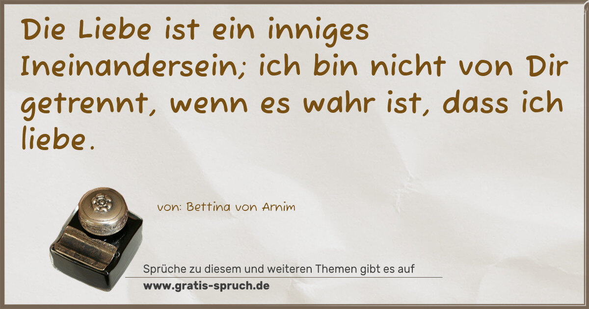 Die Liebe ist ein inniges Ineinandersein; ich bin nicht von Dir getrennt, wenn es wahr ist, dass ich liebe.