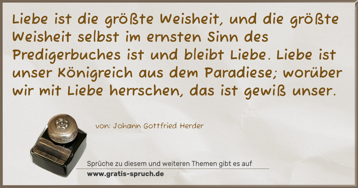 Liebe ist die größte Weisheit, und die größte Weisheit selbst im ernsten Sinn des Predigerbuches ist und bleibt Liebe. Liebe ist unser Königreich aus dem Paradiese; worüber wir mit Liebe herrschen, das ist gewiß unser.