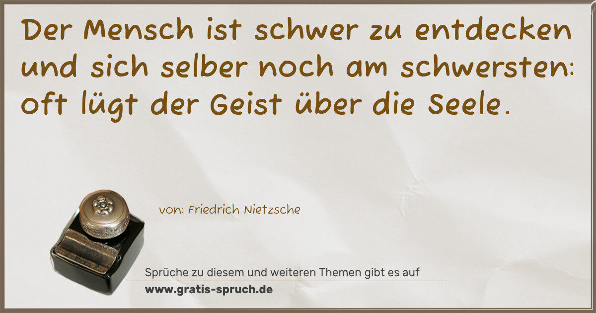 Der Mensch ist schwer zu entdecken und sich selber noch am schwersten: oft lügt der Geist über die Seele.