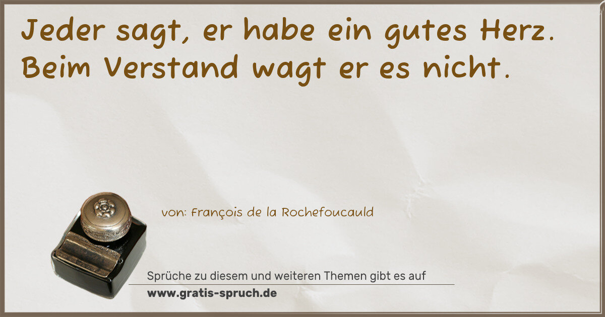 Jeder sagt, er habe ein gutes Herz. Beim Verstand wagt er es nicht.