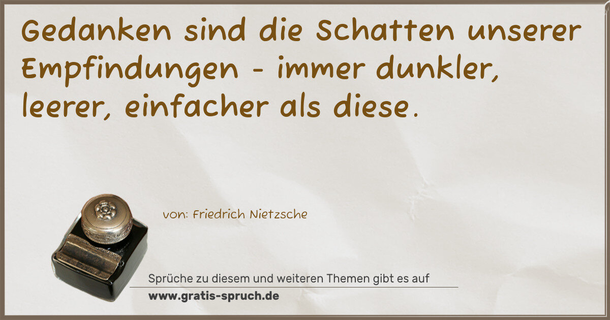 Gedanken sind die Schatten unserer Empfindungen - immer dunkler, leerer, einfacher als diese.