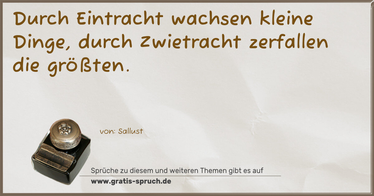 Durch Eintracht wachsen kleine Dinge, durch Zwietracht zerfallen die größten.